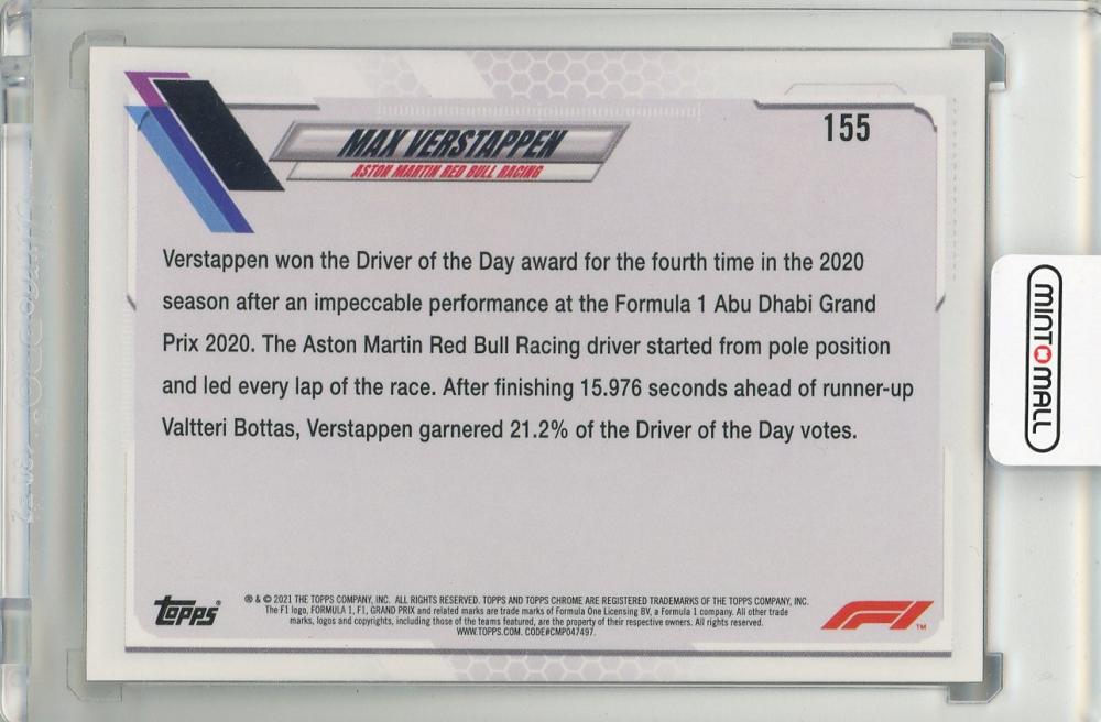 2021 TOPPS Chrome Formula 1 Aston Martin Red Bull Racing Max Verstappen Driver of the Day #155