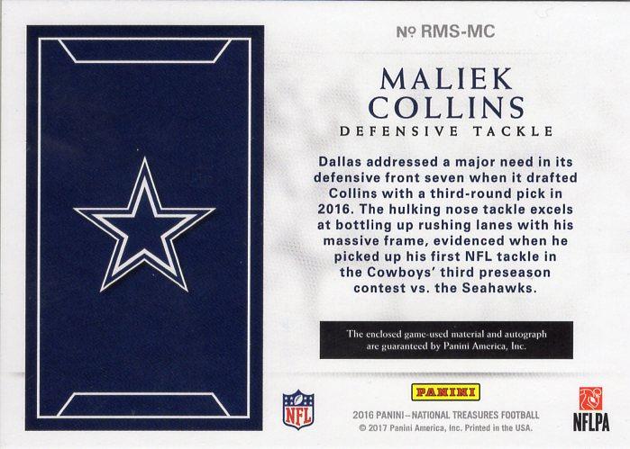 2016 PANINI National Treasures Maliek Collins Autograph & Game Used Material 13/99