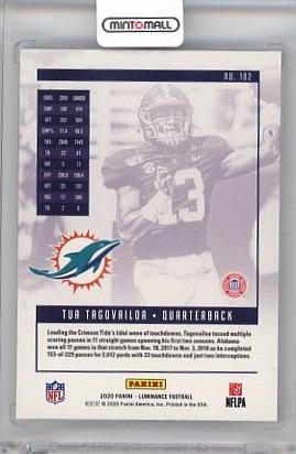 2020 PANINI Luminance Miami Dolphins #102 RC / Tua Tagovailoa