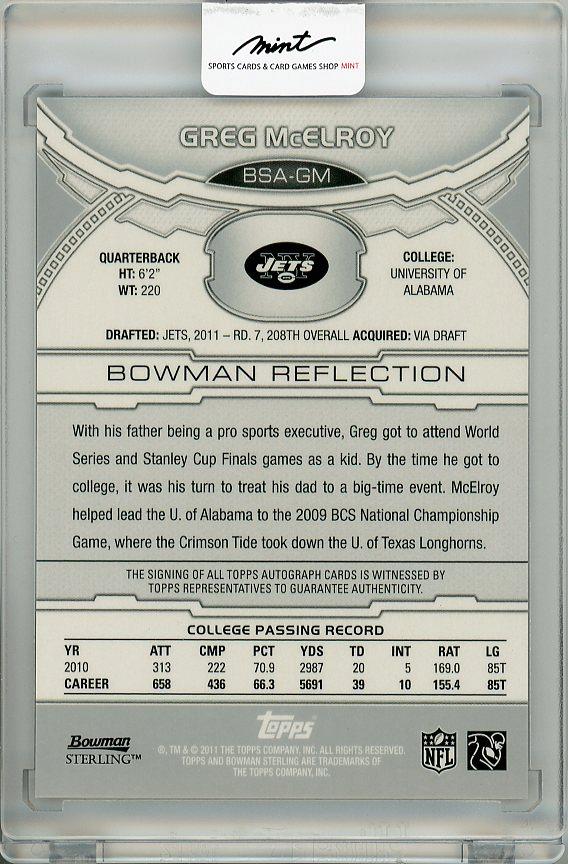 2011 TOPPS Bowman Sterling Greg McElroy Autograph (RC)