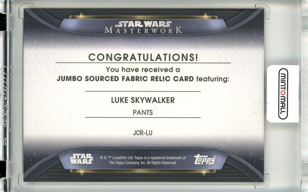 2021 TOPPS STAR WARS MASTERWORK TRADING CARDS Luke Skywalker Jumbo Sourced fablic Costume Relic Set 8/10