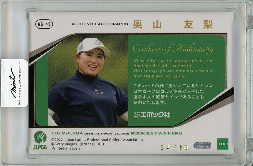 2022 EPOCH 女子プロゴルフカード Rookies & Winners 奥山友梨 直筆サインカード 24/30
