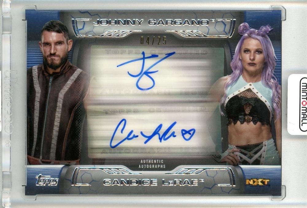 2021 Topps Undisputed WWE Johnny Gargano / Candice Lerae Authentic Dual Autograph Blue 04/25