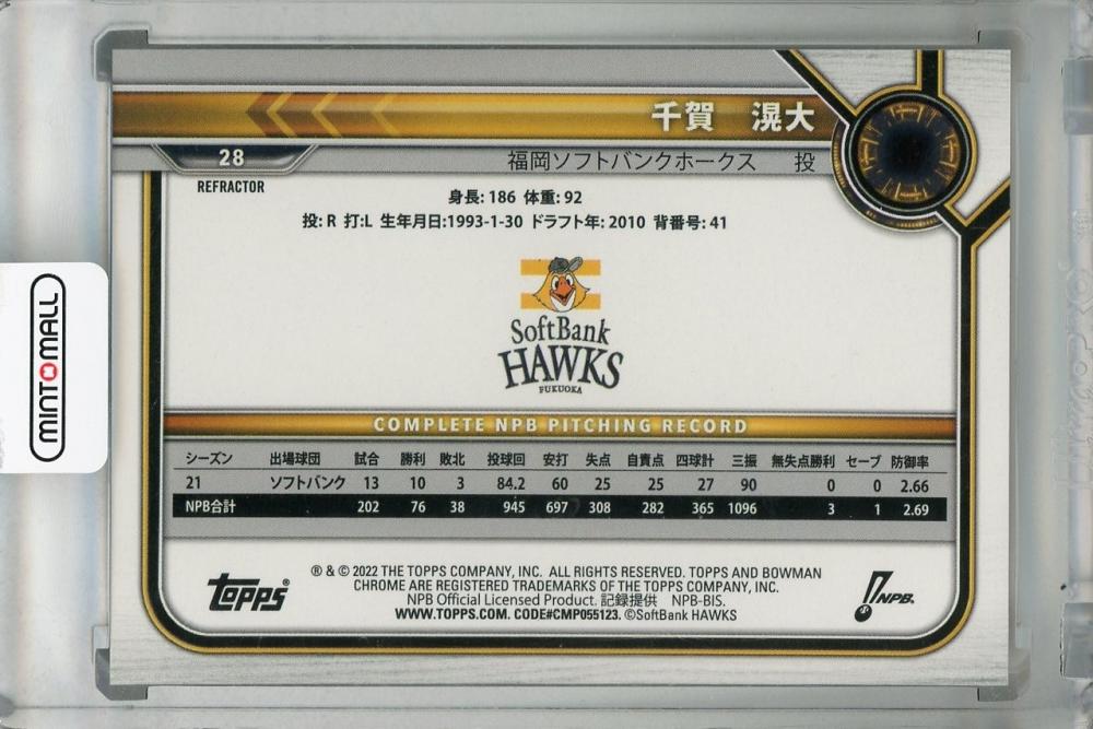 2022 Topps Bowman NPB 福岡ソフトバンクホークス 千賀滉大 Base Chrome Refractor(パラレル版)