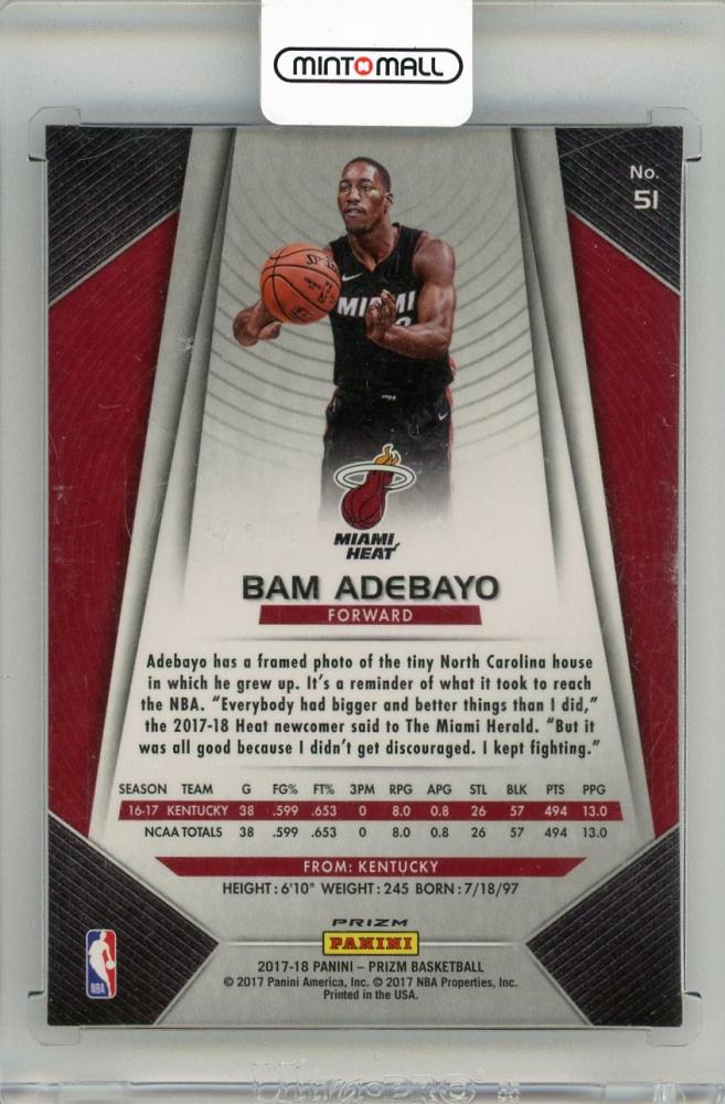 2017-18 PANINI PRIZM Prizms Hyper #51 Bam Adebayo Miami Heat