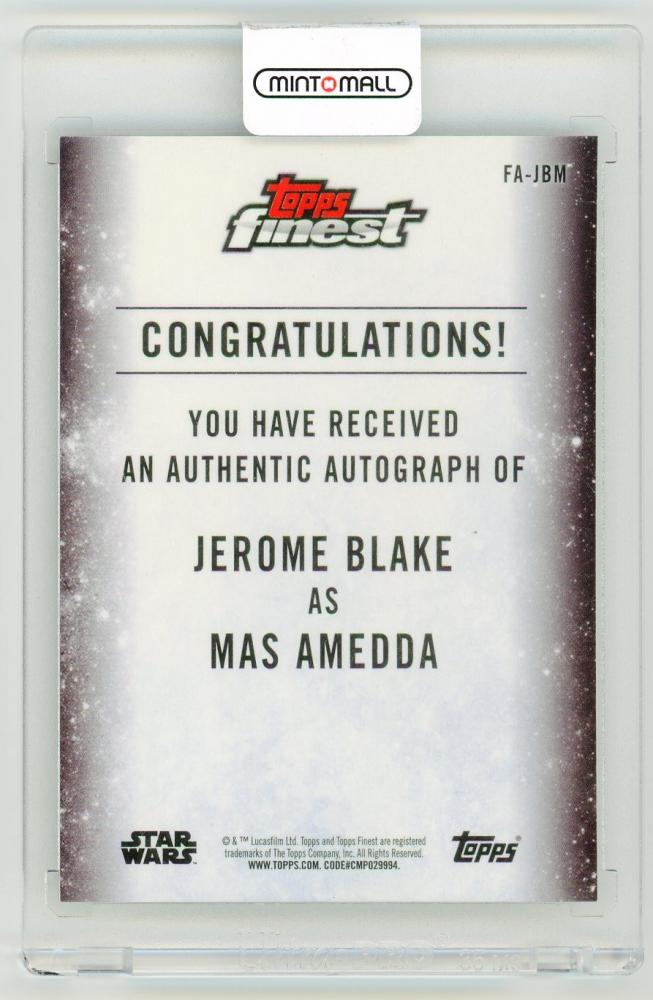 2018 TOPPS Finest Star Wars Autograph Black Parallels Jerome Blake as Mas Amedda 2/10