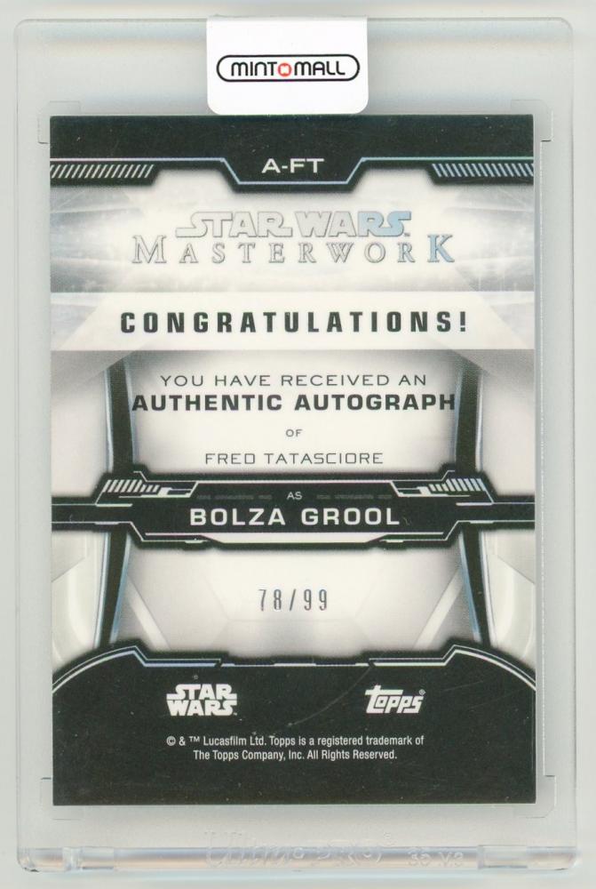 2019 TOPPS Star Wars Masterwork Autograph Blue Foil Parallels Fred Tatasciore as Bolza Grool 78/99