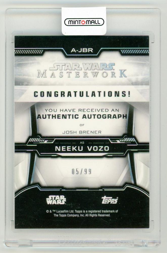 2019 TOPPS Star Wars Masterwork Autograph Blue Foil Parallels Josh Brener as Neeku Vozo 5/99