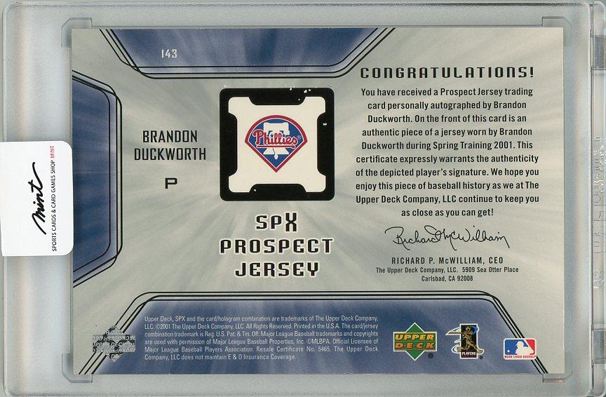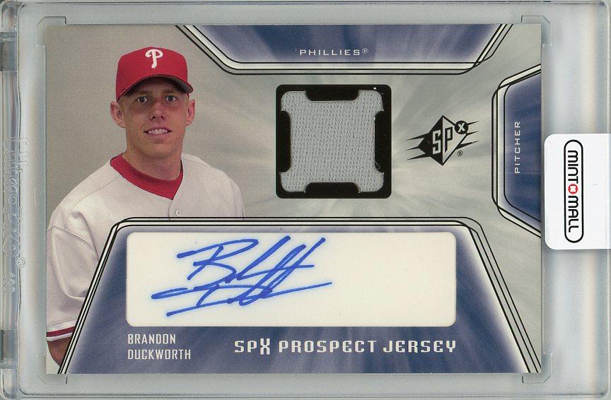 【若干白欠けあり】2001 UPPER DECK SPx Brandon Duckworth (楽天) Autograph & Player Worn Jersey