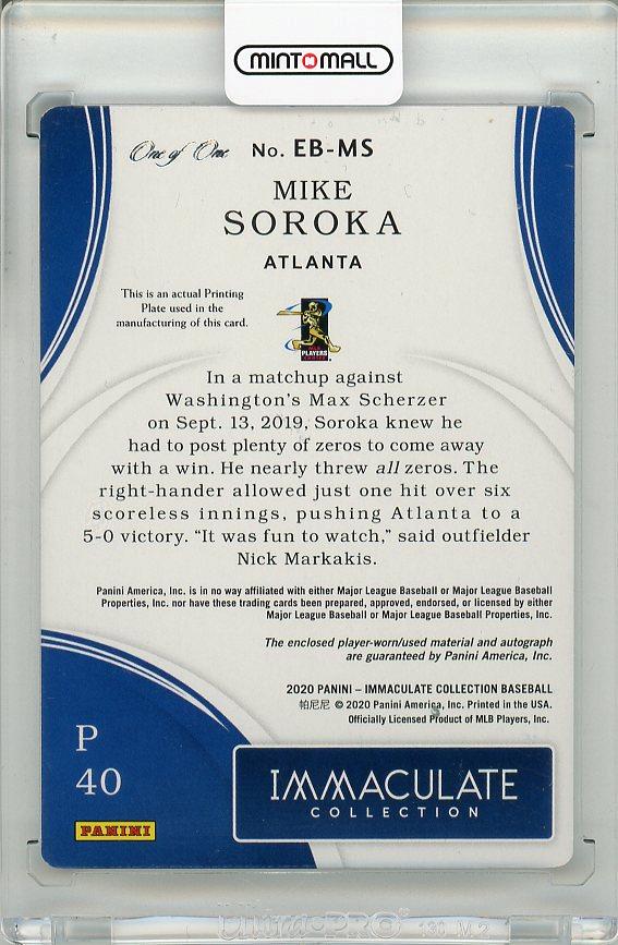 【微スレあり】2020 PANINI Immaculate Mike Soroka Autograph & Player Worn/Used Material 1of1