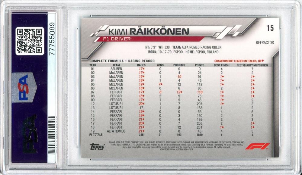 【PSA9】 2020 Topps Chrome Formula 1 Kimi Raikkonen #15 Base Refractor
