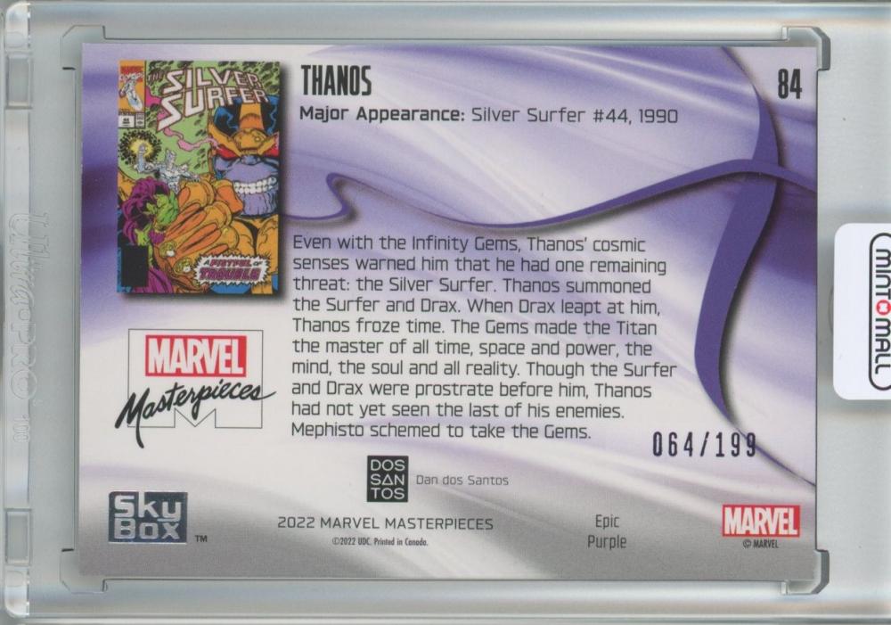2022 Upper Deck Marvel Masterpieces Thanos Epic Purple #84 64/199