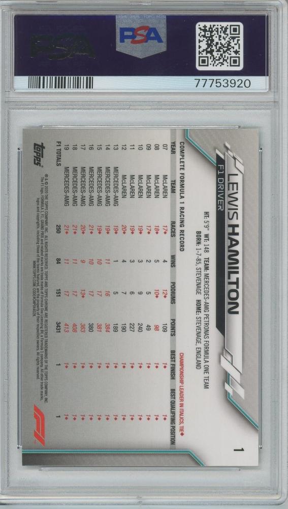 2020 Topps Chrome F1 Lewis Hamilton Base #1 【PSA10】