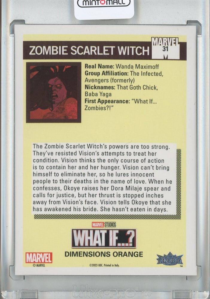 2023 UPPER DECK MARVEL WHAT IF…? Zombie Scarlet Witch 1990 Marvel Universe Orange #31 104/188