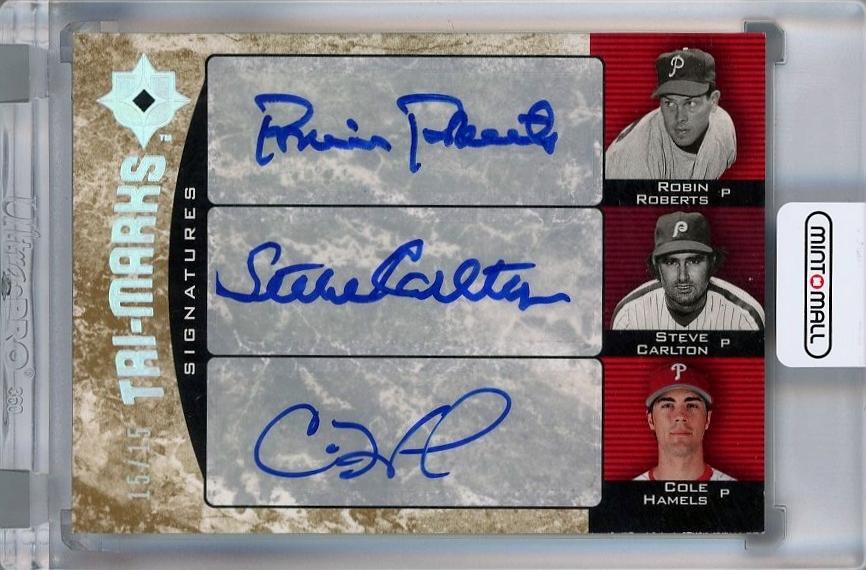 2006 Upper Deck Ultimate Collection Robin Roberts / Steve Carlton / Cole Hamels Tri-Marks Signatures Auto #CHR ※白かけあり 15/15