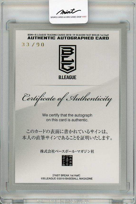 2019 BBM 2018-19 B.League Fast Break 1st Half 多嶋朝飛 直筆サインカード 33/90