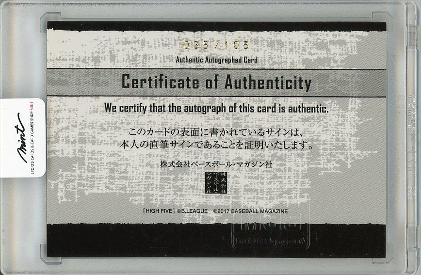 2017 BBM 2016-17 B.League トレーディングカードセット High Five 多嶋朝飛 直筆サインカード 035/105