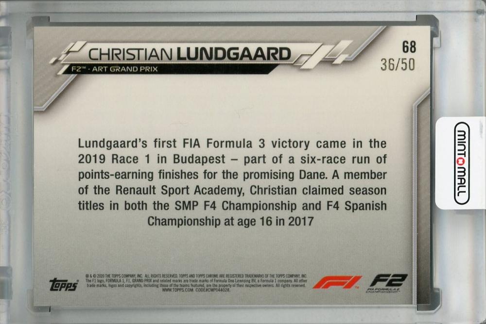 2020 Topps Chrome Formula 1 Racing Art Grand Prix F2 Christian Lundgaard Base F2 Cars Gold(パラレル版) 36/50