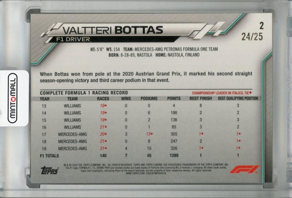 ※状態難 2020 Topps Chrome Formula 1 Racing Mercedes-AMG Petronas F2 Valtteri Bottas Base Orange(パラレル版) 24/25