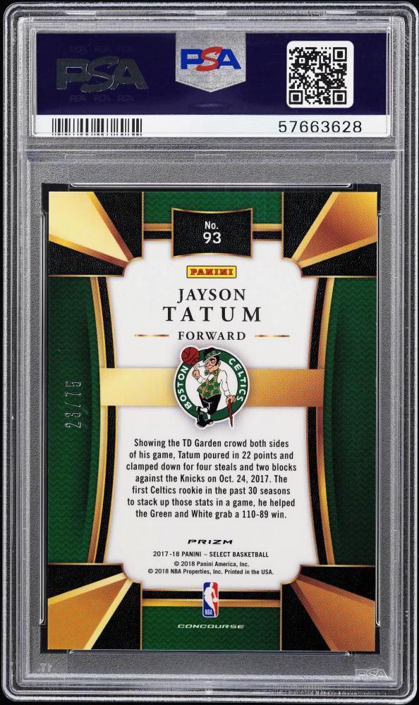2017-18 Panini Select #93 Jayson Tatum #93 RC Orange 【23/75】【PSA MINT 9】Boston Celtics