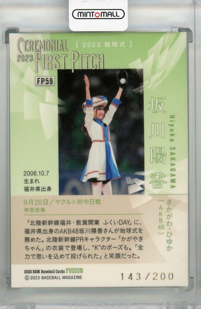 2023 BBM FUSION 坂川陽香 始球式カード 銀紙版(パラレル版) 143/200