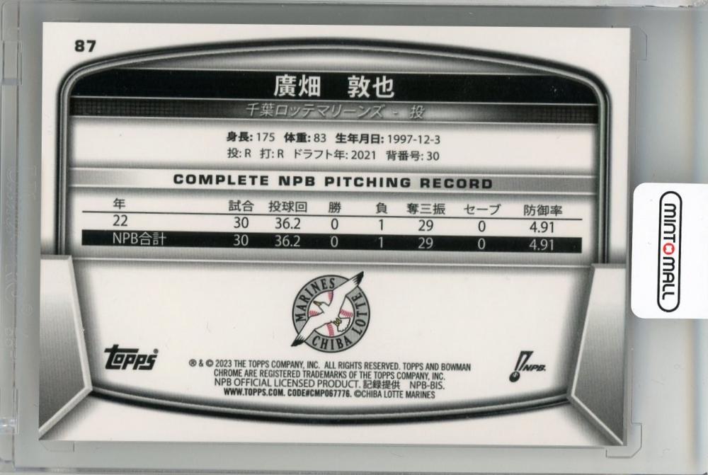 2023 TOPPS BOWMAN NPB 千葉ロッテマリーンズ Orange Refractor / 廣畑敦也 【04/25】