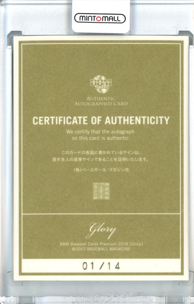 2018 BBM Glory 北海道日本ハム 中田翔 直筆サインカード 01/14