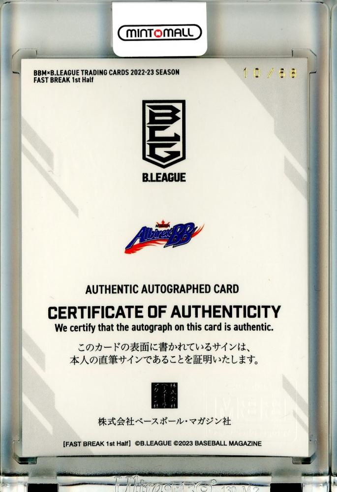 2022-23 BBM B.LEAGUE FAST BREAK 1st Half 杉本天昇 直筆サインカード 通常版 10/68(ジャージーナンバー)