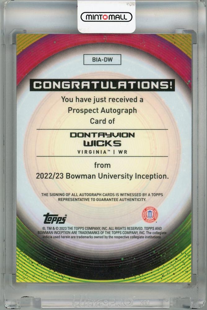 2022-23 Bowman University Inception Multi-Sport Virginia Dontayvion Wicks Base Autographs Fuchsia #BIA-AO