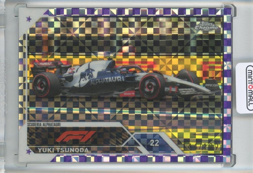 2023 Topps Chrome Formula 1 Racing Yuki Tsunoda Base/F1 DRIVERS/Purple Checker Flag/#57 144/199