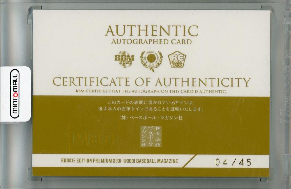 2021 BBM ルーキーエディション プレミアム 北海道日本ハムファイターズ 古川雄大 直筆サインカード 04/45