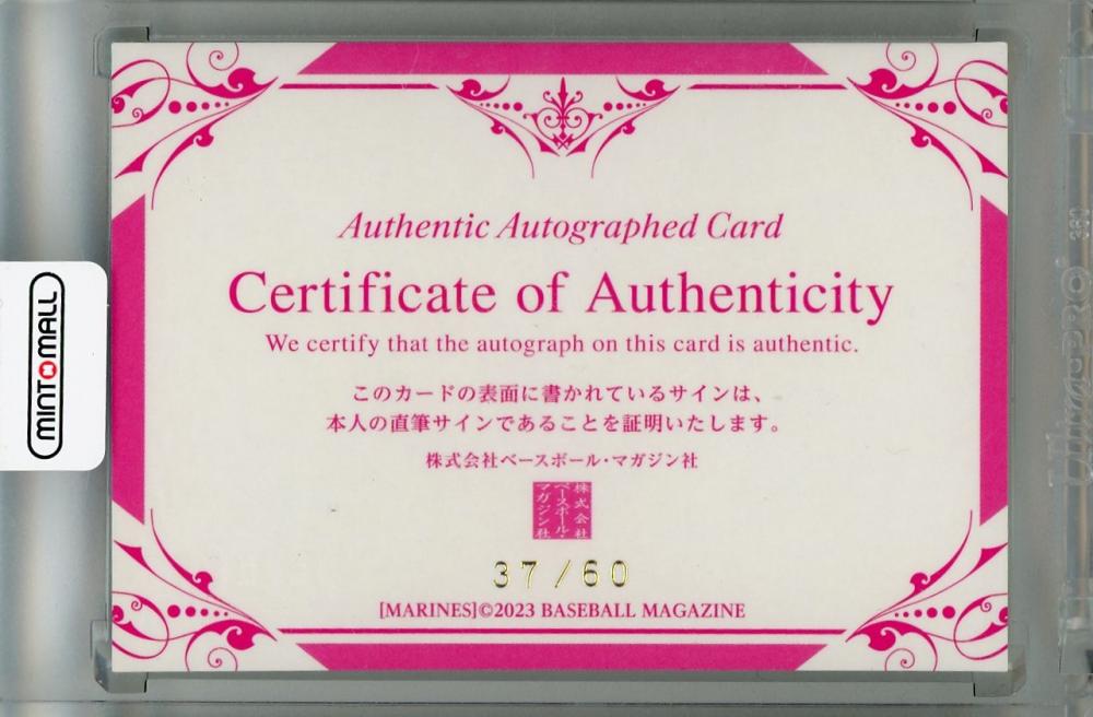 2023 BBM 千葉ロッテマリーンズ 小野郁 直筆サインカード(ジャージナンバー!) 37/60