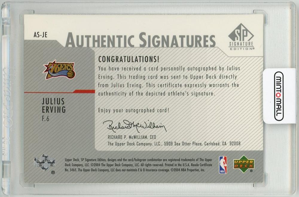 2003-04 UPPER DECK BASKETBALL Julius Erving AUTHENTIC SIGNATURES