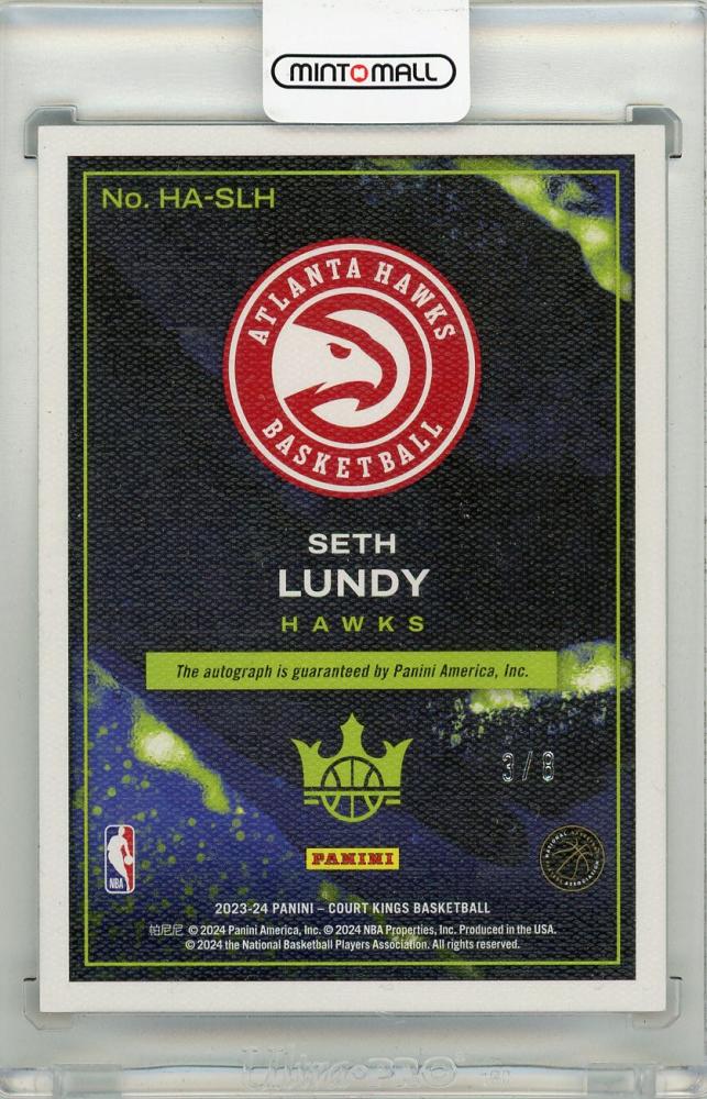 2023-24 PANINI COURT KINGS Atlanta Hawks Seth Lundy #HA‐SLH RC Heir Apparent Autograph 3/8
