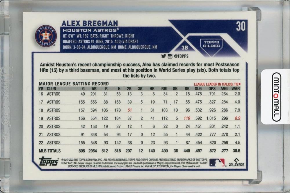 2023 Topps Gilded Collection Houston Astros Alex Bregman Wave Gold Etch #30(パラレル版) 73/75