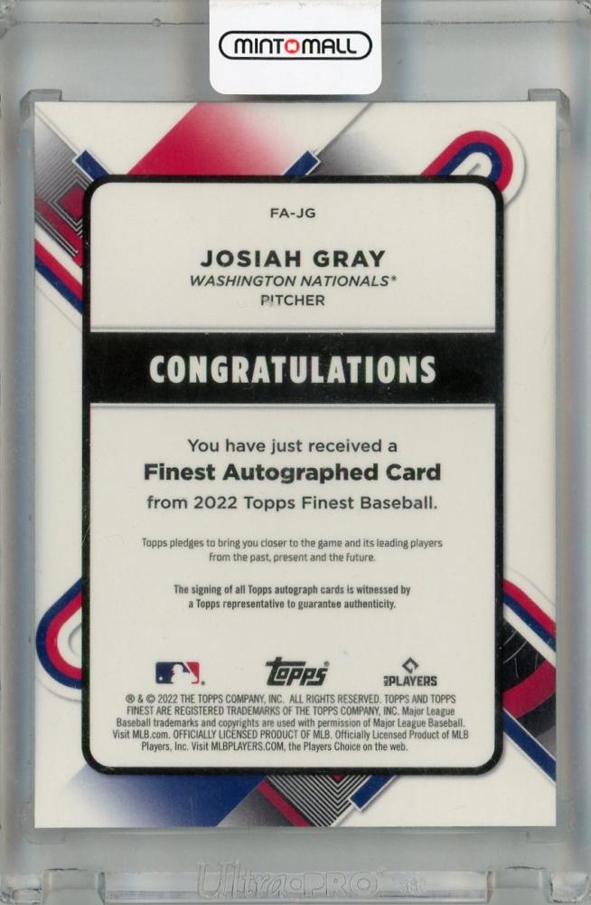 2022 Topps Finest Washington Nationals Josiah Gray Autographs Blue #FA-JG (パラレル版) RC(ROOKIE YEAR!) 128/150