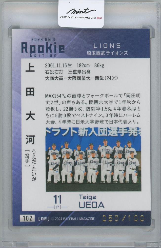 2024 BBM ルーキーエディション / 上田大河(埼玉西武ライオンズ) 銀箔サインパラレルカード 【050/100】