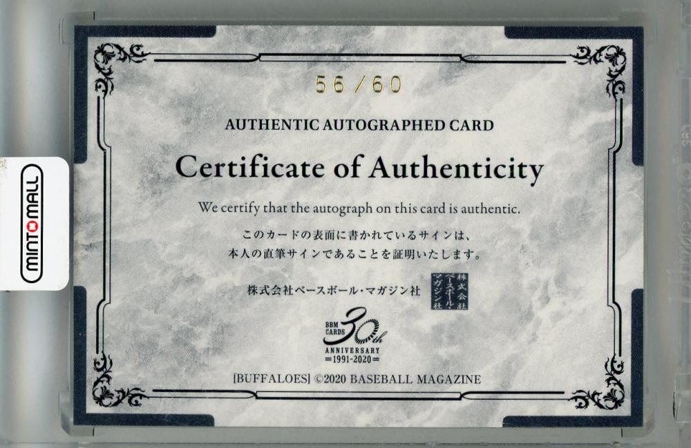 2020 BBM オリックス・バファローズ アンドリュー・アルバース 直筆サインカード 56/60