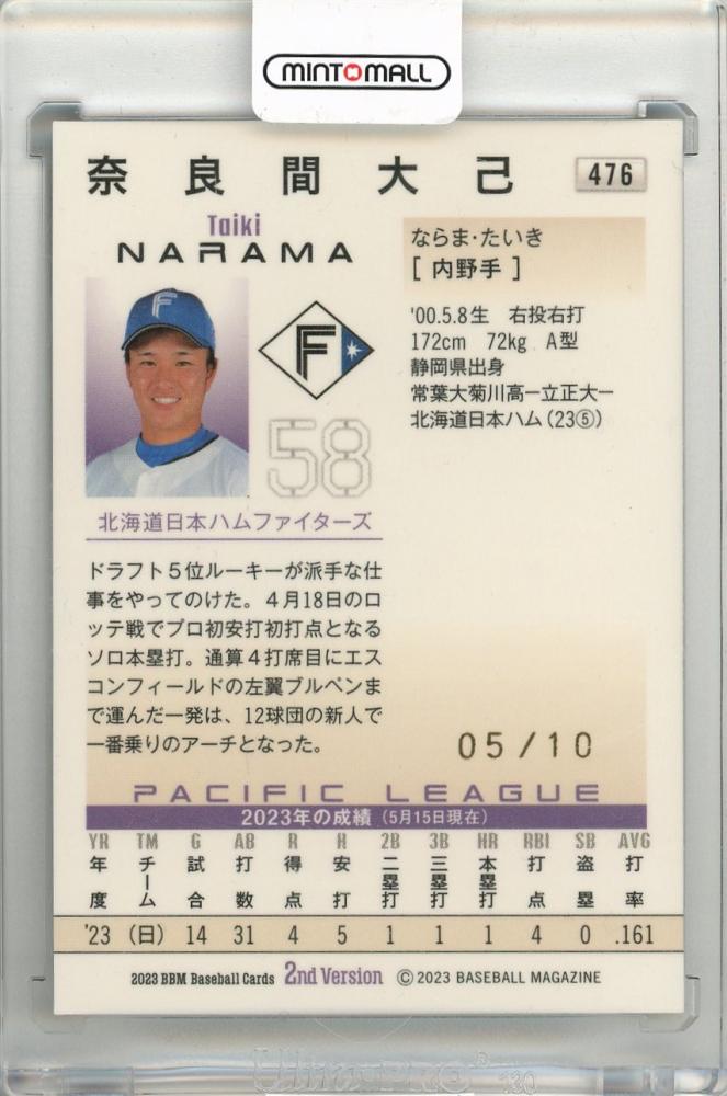 2023 BBM 2nd Version 北海道日本ハムファイターズ レギュラーカード パープル箔サイン版 / 奈良間大己 【05/10】