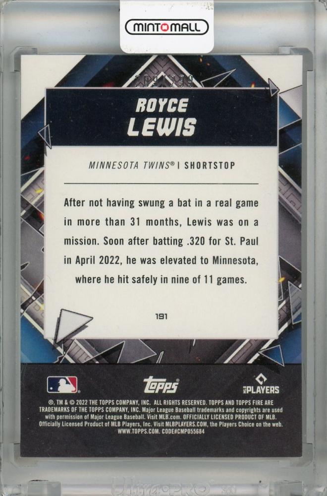 2022 Topps Fire Minnesota Twins Royce Lewis Orange #191 (パラレル版) RC (ROOKIE YEAR!) 209/299