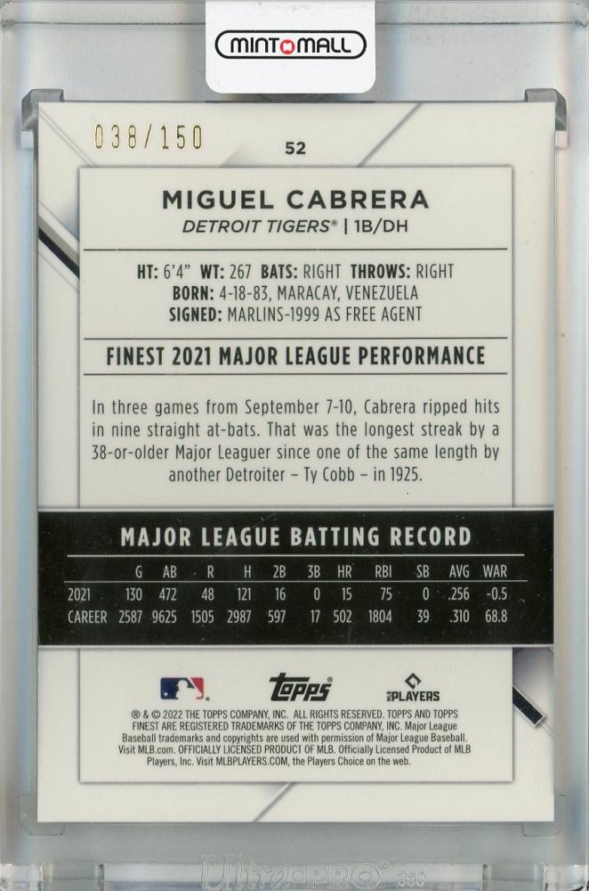 2022 Topps Finest Detroit Tigers Miguel Cabrera Blue #52(パラレル版) 038/150