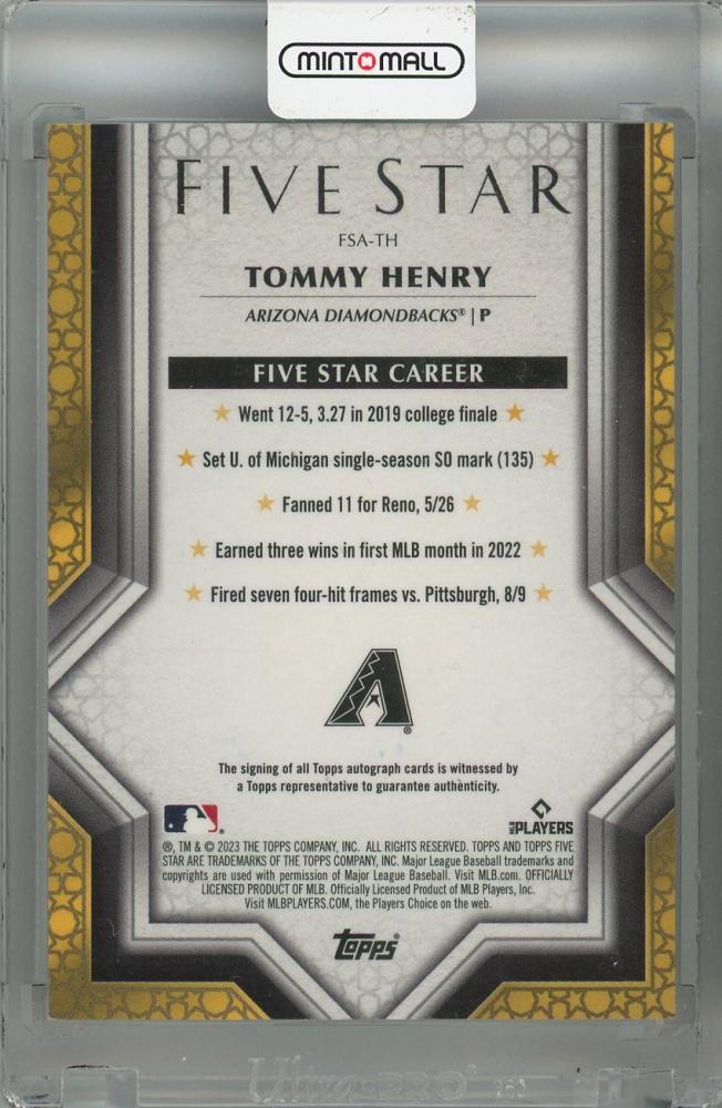 2023 Topps Five Star Arizona Diamondbacks Tommy Henry Autograph #FSA-TH RC(ROOKIE YEAR!)