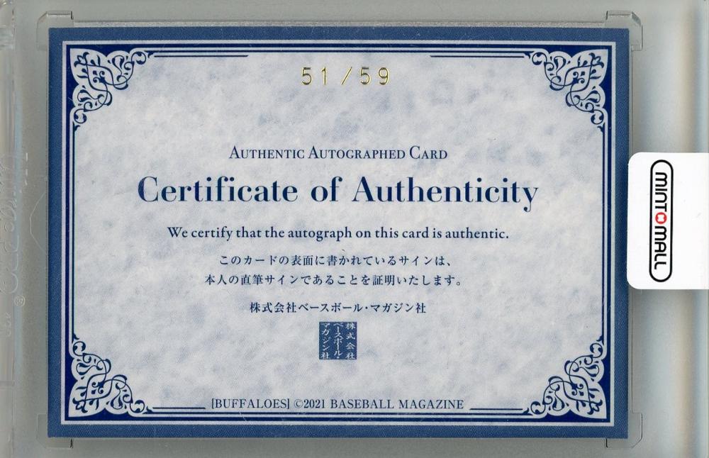 2021 BBM オリックス・バファローズ 直筆サインカード / 本田仁海 【51/59】