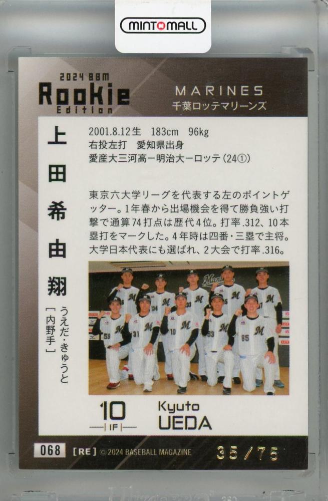 2024 BBM ルーキーエディション 千葉ロッテマリーンズ 上田希由翔 レギュラーカード 金箔サイン版(RC)(パラレル版) 35/75