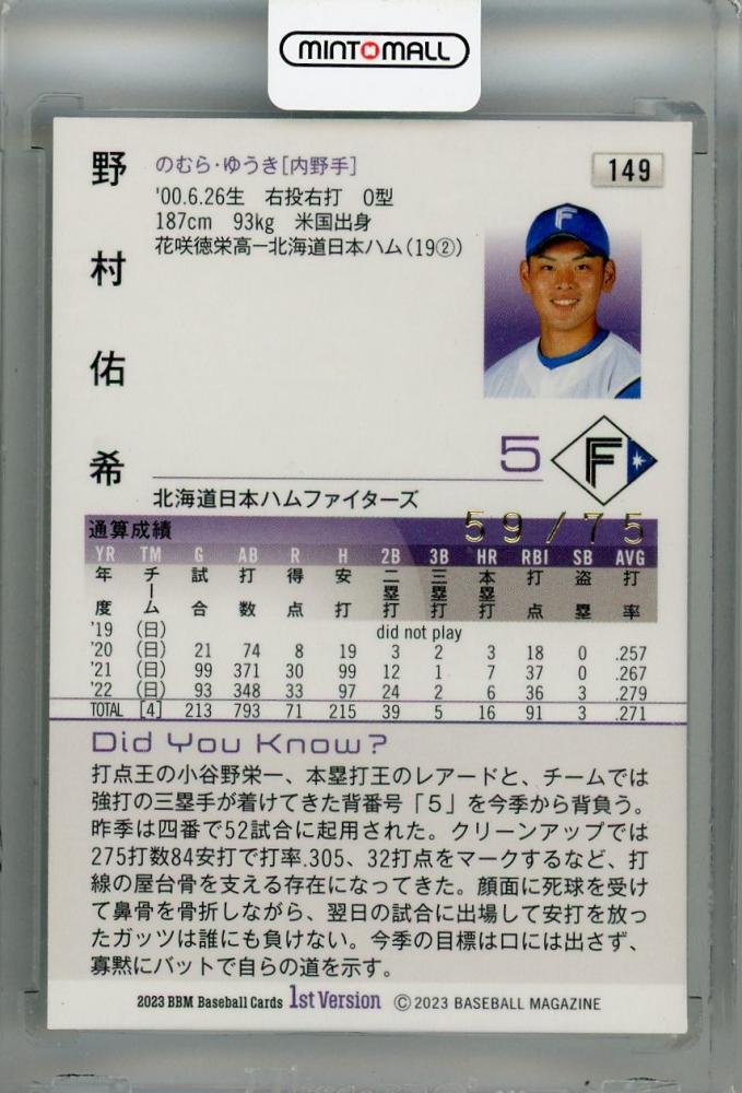 2023 BBM 1st Version 北海道日本ハムファイターズ 野村佑希 レギュラーカード ピンク箔サイン版(パラレル版) 59/75