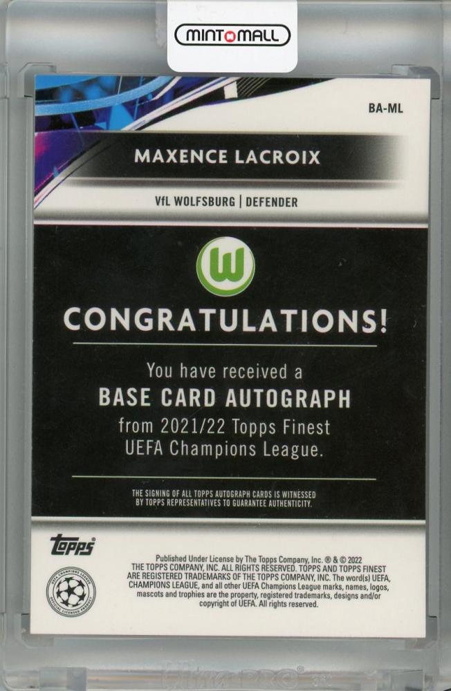 2021-22 Topps Finest UEFA Champions League VfL Wolfsburg Maxence Lacroix Autographs Blue #BA-ML