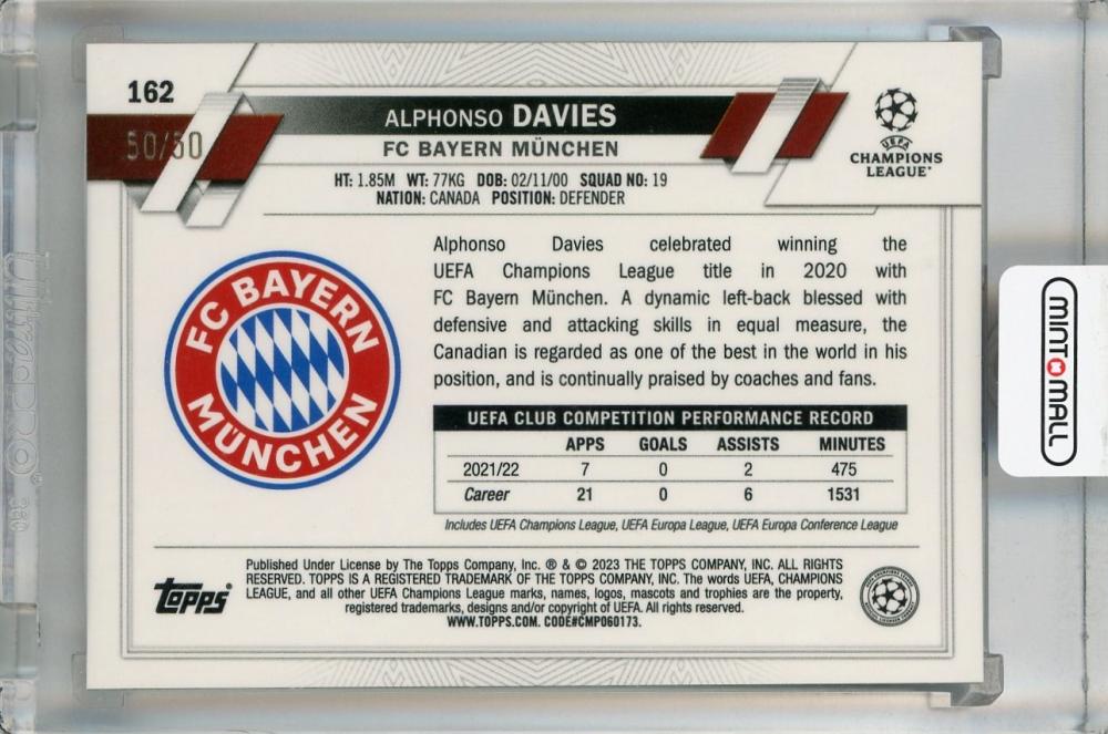 2022-23 Topps UEFA Club Competitions FC Bayern Munchen Alphonso Davies Gold Mini-Diamond #162 (パラレル版)(Lastナンバー!) 50/50