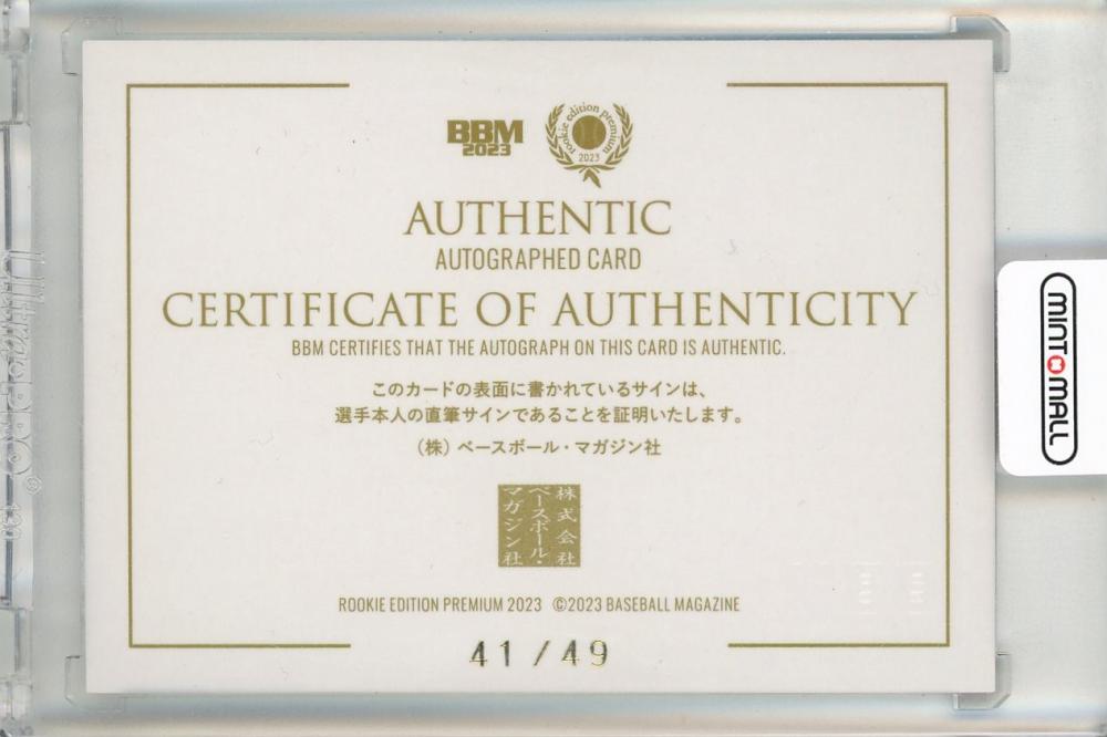 2023 BBM ルーキーエディション プレミアム 埼玉西武ライオンズ 直筆サインカード 横版 / 野田海人 【41/49】