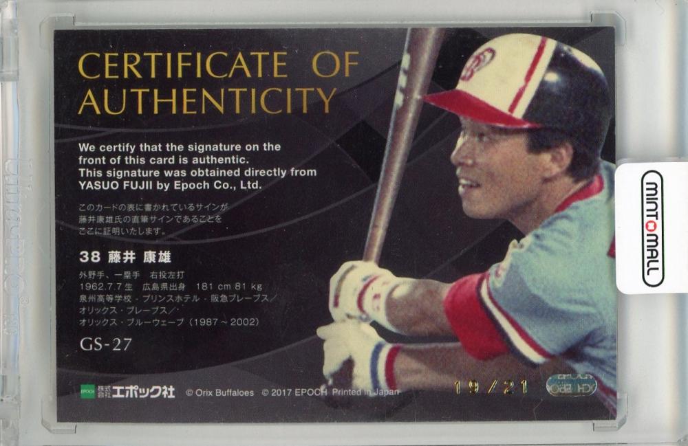 2017 EPOCH 阪急ブレーブス GREATS 直筆サインカード GOLD / 藤井康雄 【19/21】