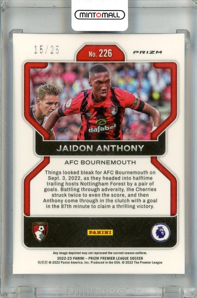 2022-23 Panini Prizm Premier League AFC Bournemouth Jaidon Anthony Blue Mojo #226 (パラレル版) RC(ROOKIE YEAR!) 15/25